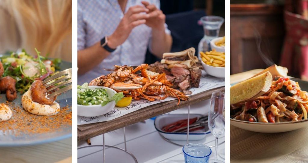 For local seafood beside the sea, try: The Hut, The Crab & Lobster, Fisherman’s Cottage, Murrays, The Blue Crab.
